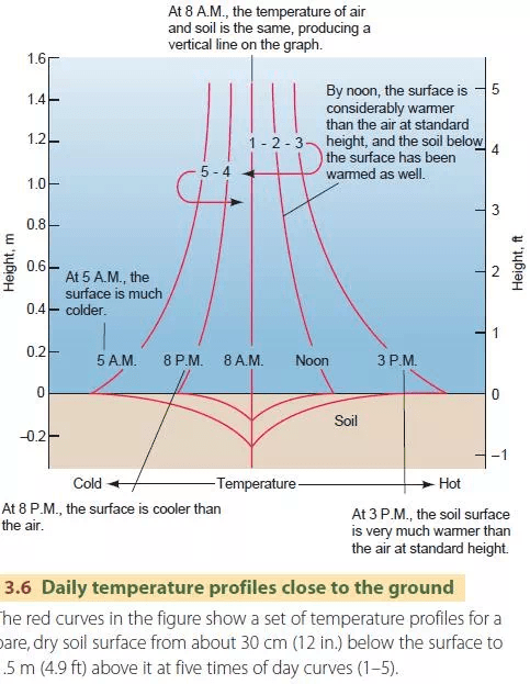 From our studies, we found that the air can be up to 12C hotter just above the ground at solar peak (<.5m) than the given “weather” temperature.